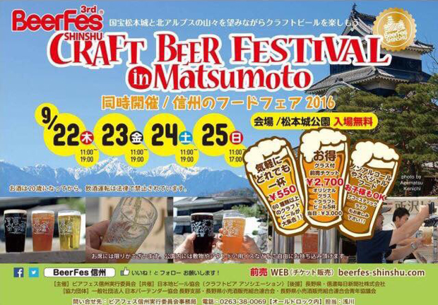 クラフトビールフェスティバル in 松本 日時:2016年9月22日~25日 場所:松本城公園 入場無料(飲食代は別途) シルバーウィークに、長野県のおいしい地ビールに舌鼓を打ってはいかがですか?(私も参戦予定です!)(グァルネリ)
