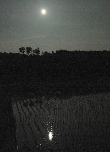 もし田毎の月で天下に名を轟かせる更級の里の地形がきわめて特殊で、棚田の1枚1枚に満月が写しだされているとしたら、地元のテレビ局がこれをほおって置くわけがない。NHKが「田毎の月」をニュースで流したことがあるのでしょうか? 当編集部は、田毎の月という言葉に心惹かれるものを感じて、先日も棚田に写真撮影を敢行したのですが、先日は寒くて曇りで月は出ず、先月は旧豊田村で試しに撮影したら「こんな感じ(写真クリックで拡大)」で、月の映り方は田毎の月などと呼べるものではないようでした。もしどなたかでどこの棚田でもかまいませんが「田毎の月」を証明できる写真か映像をお持ちの方は、ぜひお見せください。