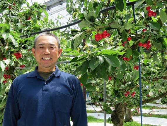 訪れたのは、県北部にある中野市竹原地区。リンゴやブドウ、サクランボなどの果樹園が広がるこの地区で、代々リンゴやブドウを栽培する果樹農家・市川和仁さんにお話を伺いました。 市川さんがサクランボ栽培を導入したのは23年前。これまで培ってきた施設(ハウス)栽培の技術を応用してサクランボも栽培しています。栽培する上で気をつけていることが、収穫後の木の管理です。サクランボの木は天敵であるハダニが発生しやすく、木を元気に保つことは来年の実を収穫することに関わってくるため、収穫後も気が抜けません。木の管理には、JAで推奨される農薬を使用しますが、市川さんは推奨される使用量の半分程度に抑えるよう心がけています。また、木によっても状態が違うため、一本一本を見ながら施用も変えていると言います。