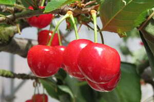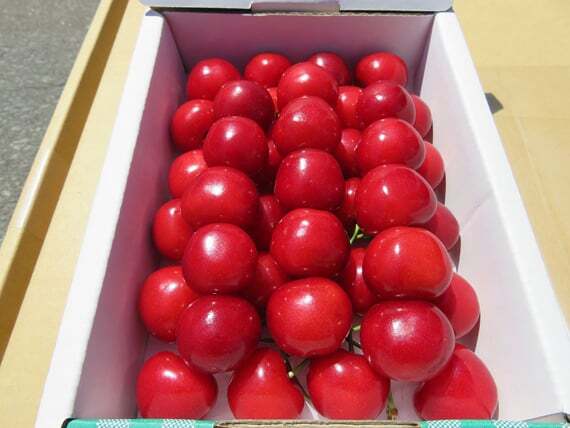 さて、おいしいサクランボの見分け方はご存知でしょうか? サクランボは、実が赤いものが甘くおいしいとされています。そのため、おいしいサクランボを届けれるよう、赤く色づくギリギリまで木に成らせておきます。熟しすぎると、実が軟らかくなりすぎ、潤んできてしまいますので、色づきと熟度を見極めながら収穫を行っています。 「収穫時期は2週間程度、遅くとも5月いっぱいまでに収穫を終わらせてしまう」というので驚きです。まさに短期決戦です。