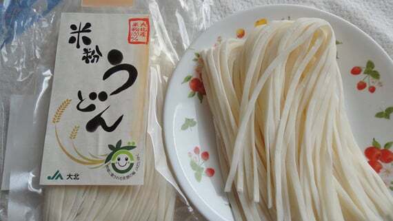 麺の種類はうどん、パスタ、ラーメンの3種類。パスタとラーメンには、クチナシ色素で黄色味を付けています。ラーメンには付属のタレ(しお、しょうゆ、みそ)が付いています。別売りで、うどん用の特製つゆもあり、ラーメンのタレ、うどんのつゆ共にグルテンフリーで安心です。
