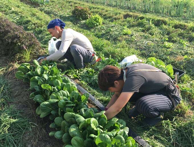 自然農ワークショップで春野菜を収穫
